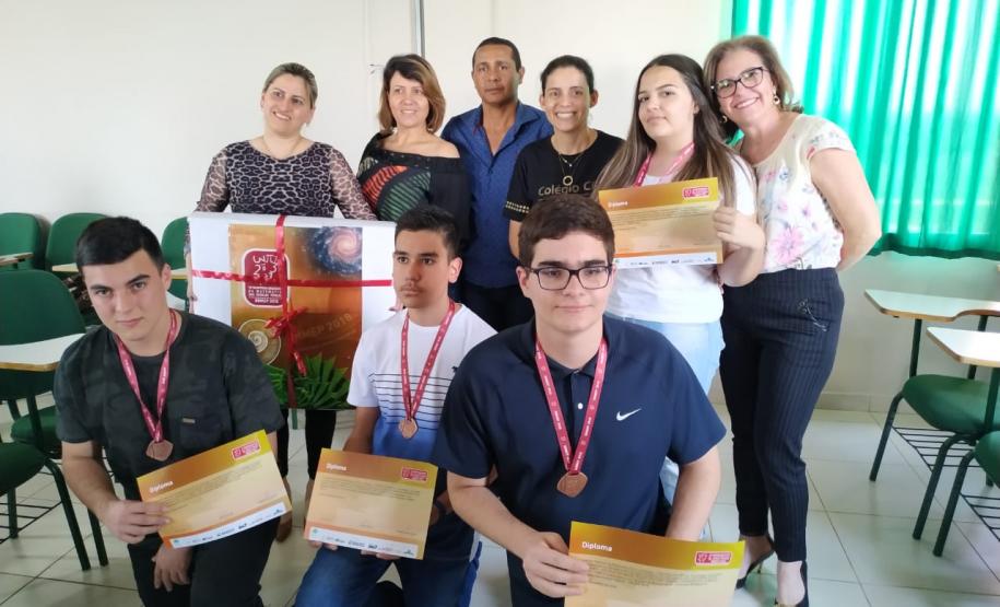 Na segunda-feira (26/08) houve a Cerimônia da OBMEP para entrega das medalhas de prata e bronze aos alunos dos Núcleos Regionais de Educação de Campo Mourão, Cianorte, Paranavaí, Pitanga e Loanda. A cerimônia ocorreu nas dependências do Núcleo Regional de Educação de Campo Mourão.