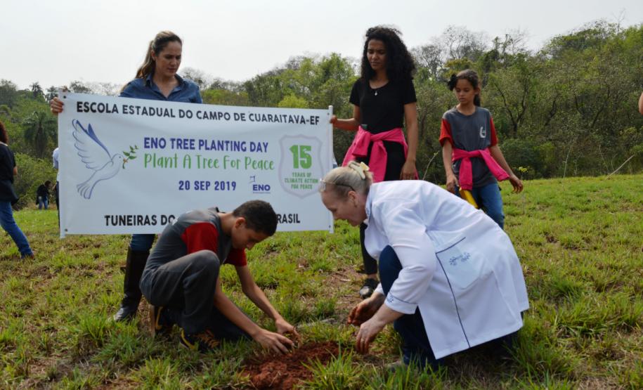Nesta sexta-feira 20 de setembro, os alunos da Escola Estadual do Campo de Cuaraitava, em Tuneiras do Oeste participaram de uma campanha internacional pela conscientização global de preservação e plantio de árvores, o Plant a Tree For Peace (plante uma árvore pela paz).