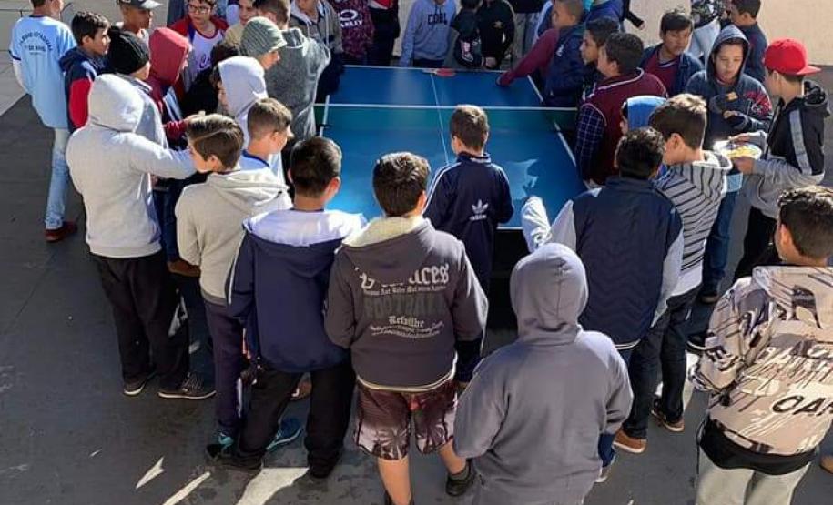 Durante o mês de agosto, os estudantes do Colégio Estadual 11 de Abril, do município de Tapejara, participaram de um Torneio de Tênis de Mesa promovido pelo Grêmio Estudantil. O foco principal dessa ação era incentivar a frequência escolar dos alunos, através da participação e interação entre alunos de diferentes turmas do colégio durante os intervalos. Além disso, puderam estimular a solidariedade entre os participantes, visto que a inscrição para o torneio era 1 kg de alimento, os quais serão doados para os alunos carentes em forma de cestas básicas.